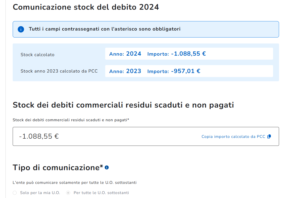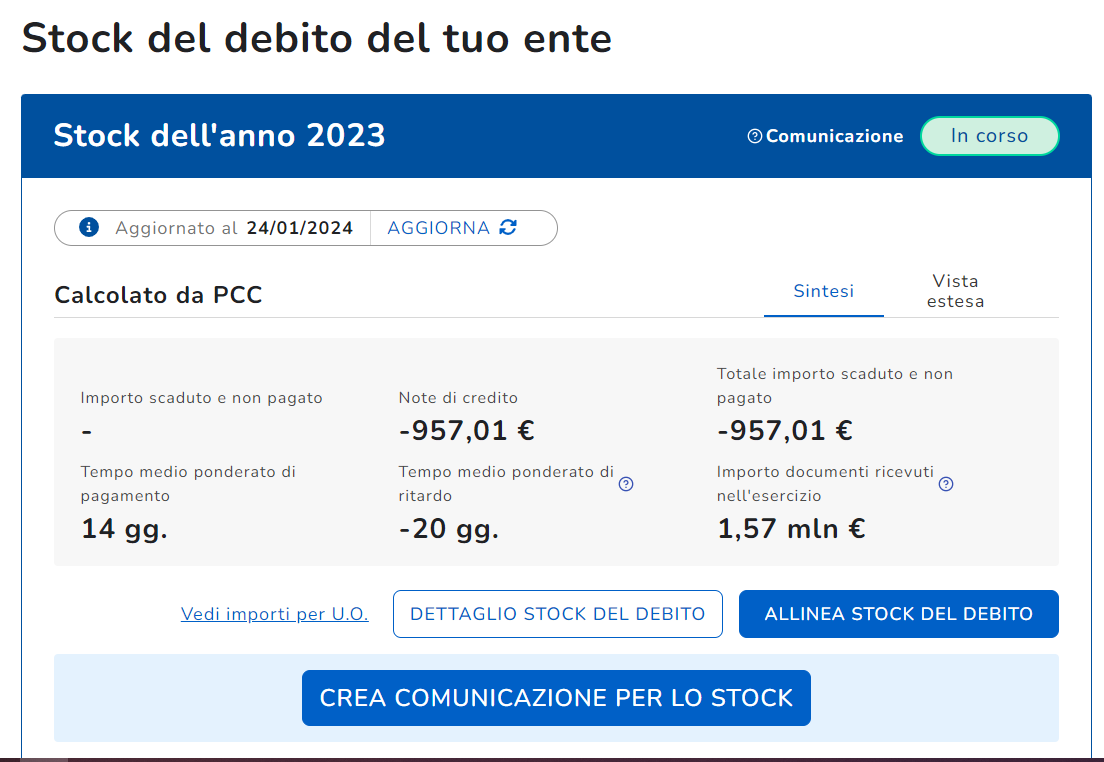 Ammontare complessivo dello stock dei debiti commerciali residui scaduti e non pagati alla fine dell'esercizio 2023 (art. 1 comma 867 della Legge 145/2018 e s.m.i.)