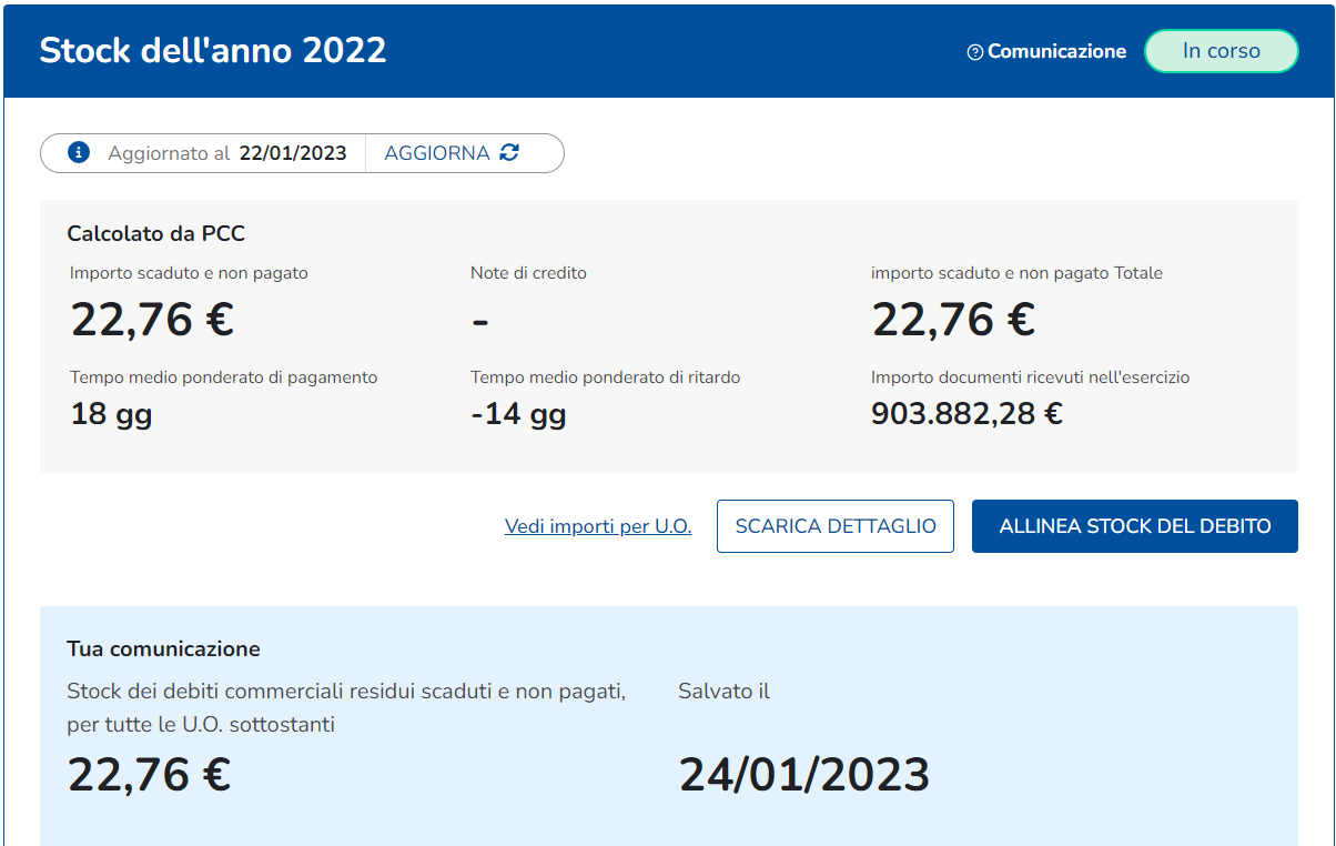 Ammontare complessivo dello stock dei debiti commerciali residui scaduti e non pagati alla fine dell'esercizio 2022 (art. 1 comma 867 della Legge 145/2018 e s.m.i.)